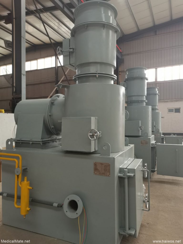 Дизельная установка для сжигания медицинских отходов Скорость горения: 47,5–50 кг / час Минимальная рабочая температура: 850 ° C (первичное сгорание)