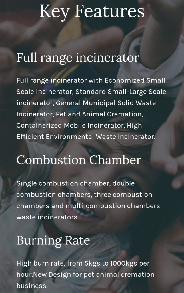 وصف المنتج مبدأ معدات الحرق هو الترميد / الاحتراق / الحرق. بشكل عام ، الوظيفة هي معالجة النفايات للنفايات الصلبة